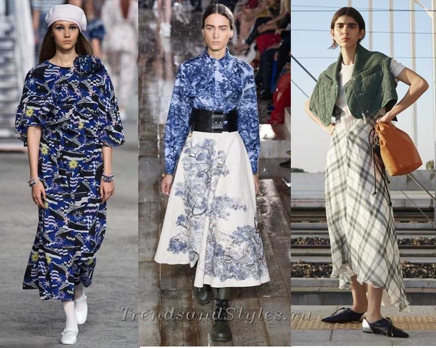 Легкие натуральные ткани, свободный силуэт и длина миди — трио, которое охарактеризует весенний и летний сезон 2019. Модные юбки, платья, женские брюки будут приближаться к нижней части голени.