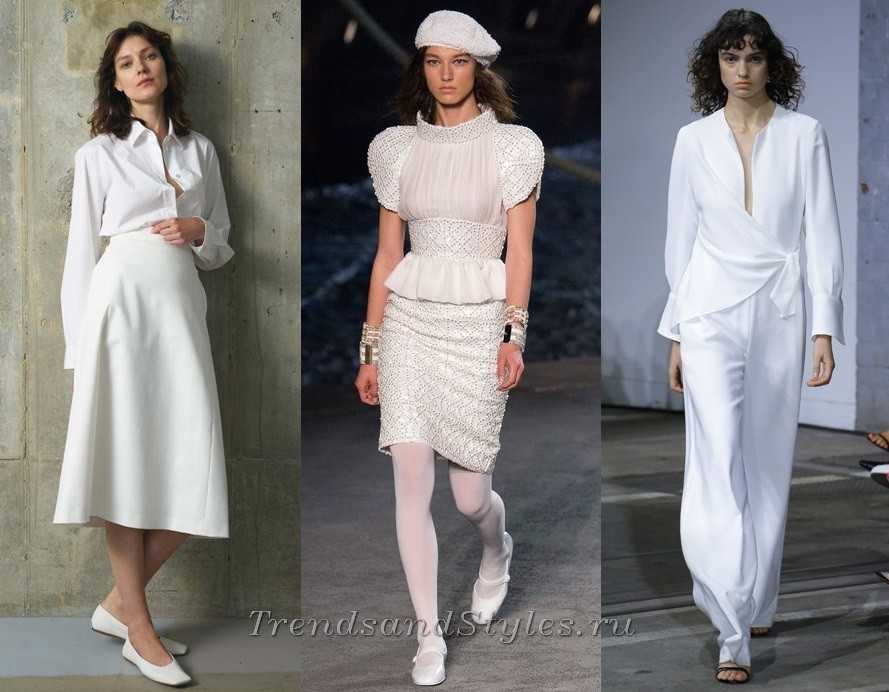 Total wighte — ожидаемый тренд теплого сезона. И действительно, кажется, нет такого показа, где бы не встретился полностью белый ансамбль. Решившие следовать такой модной тенденции могут разбавить светлый образ черными или цветными вкраплениями, деталями: темним бретелями на платьях, обувью, сумками.