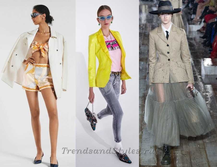Еще один важный «игрок» в весенне-летнем гардеробе женщины 2019 — пиджак. Как только необходимость в теплой верхней одежде отпадет, дополнять пиджаком можно любые вещи: джинсы, шорты с топом, юбки, платья и брюки любого фасона.