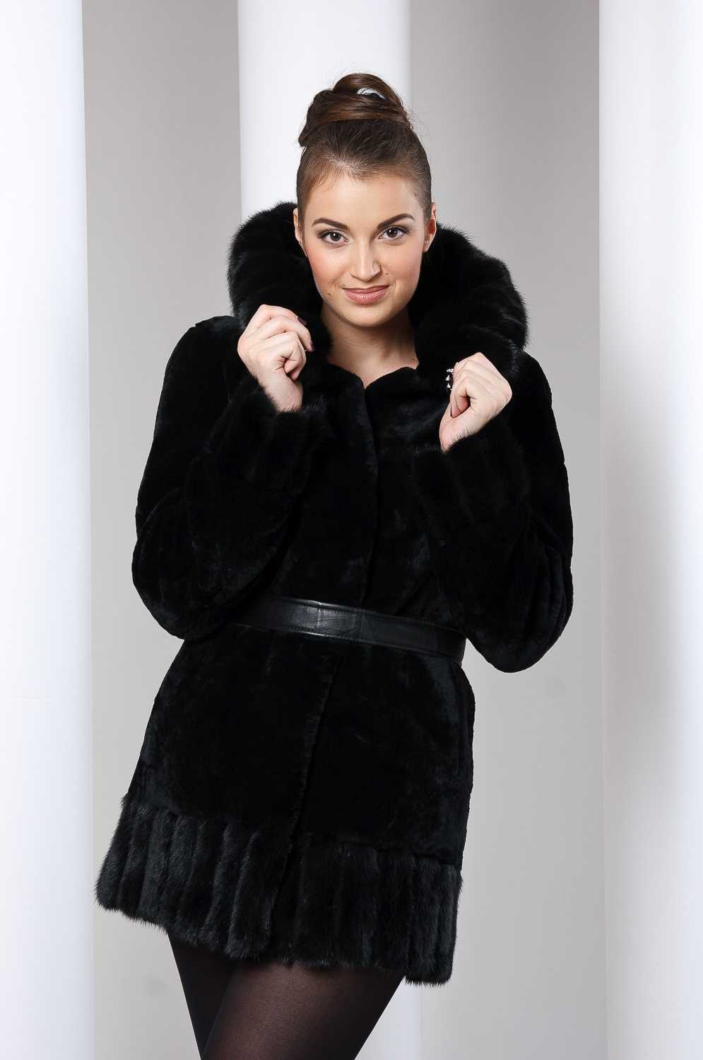 В магазинах чаще всего встречаются шубы из мутона с капюшоном, который отделан другим мехом. Капюшон часто оторачивают норкой и чернобуркой. Такие изделия смотрятся просто шикарно и позволяют дамам не носить шапку. Женщины вполне могут защитить голову от холода, накинув капюшон.