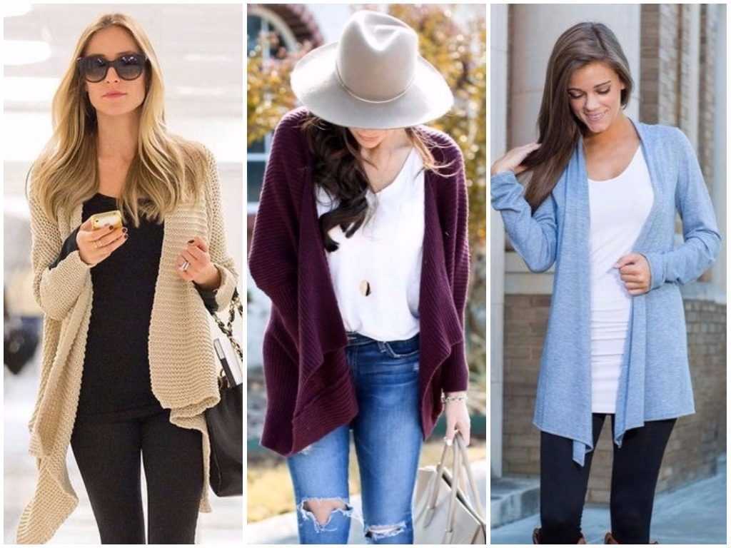 Удлиненные вязаные или кардиганы из ткани идеально сочетаются с джинсами, брюками или с модными снова леггинсами. Кстати, также отлично будет смотреться с шарфами, советую посмотреть фото модных шарфов.