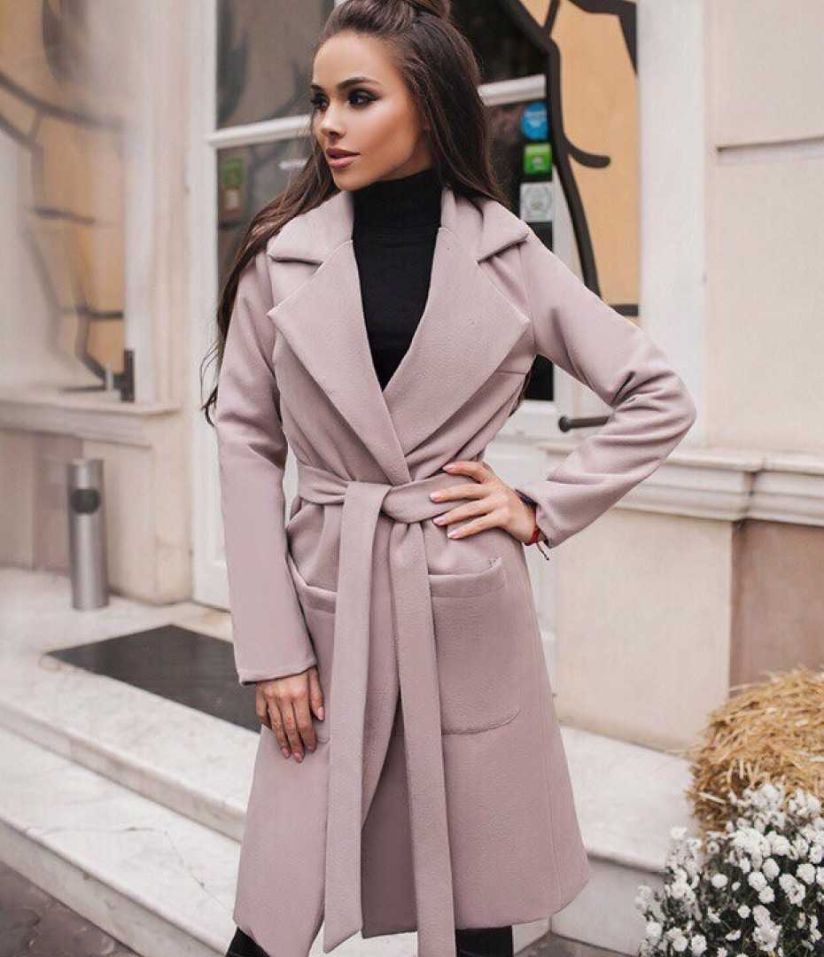 Модное кашемировое пальто с кожаным ремешком фото новинка сезона