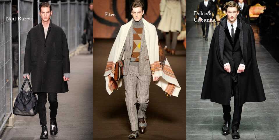 Что касается моделей, в зимних модных коллекциях представлены дафлкоты, макинтоши, пальто-регланы. Также актуальны в нынешнем сезоне ретро-тенденции. Для смелых и оригинальных мужчин дизайнеры разработали интересные модели накидок.
