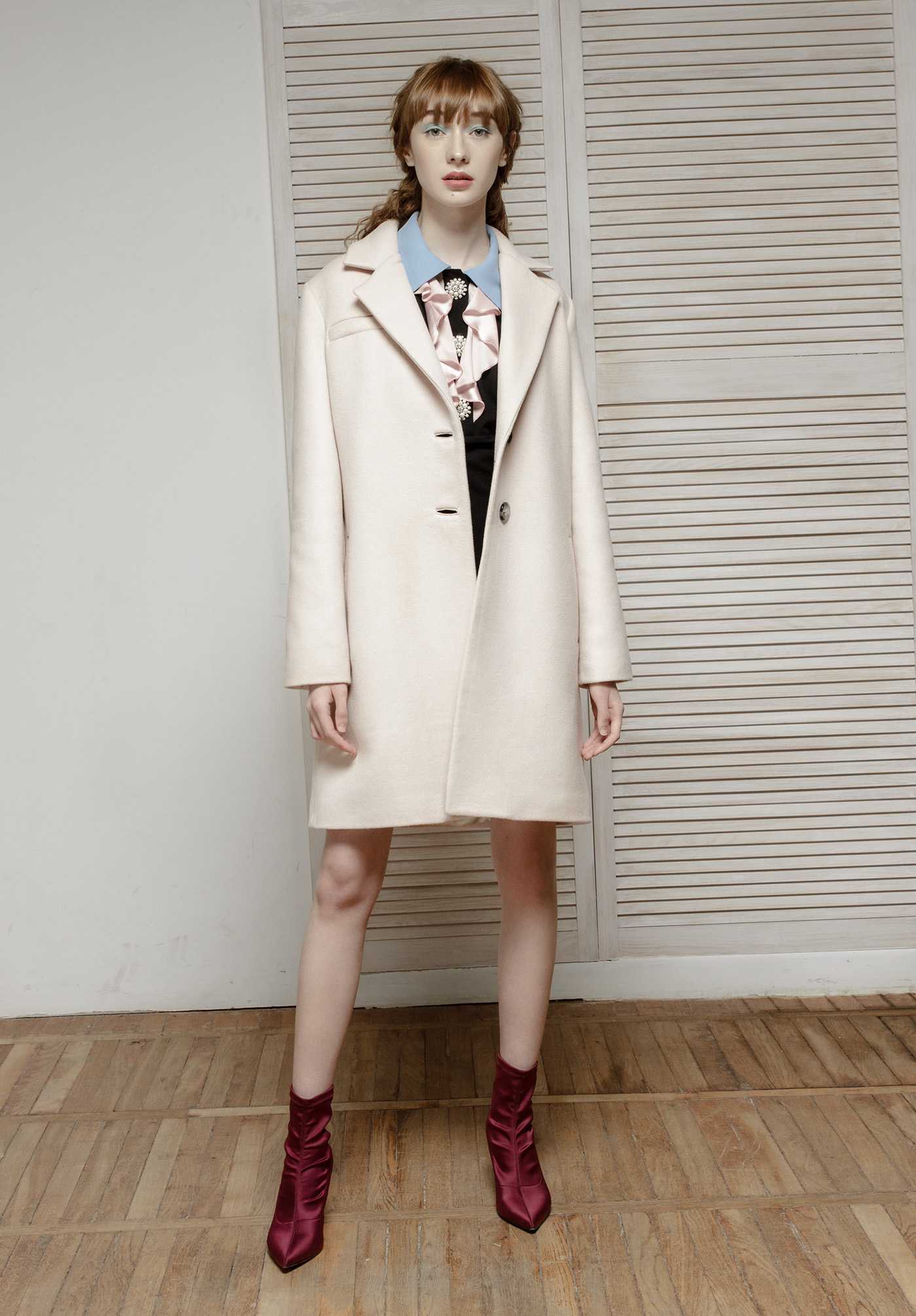 Пальто без воротника – актуальный тренд нынешнего сезона. Лаконичность и минимализм кроя предполагает наличие шарфа. Также верхняя одежда прекрасно сочетается с водолазками и теплыми свитерами с воротником под горло.