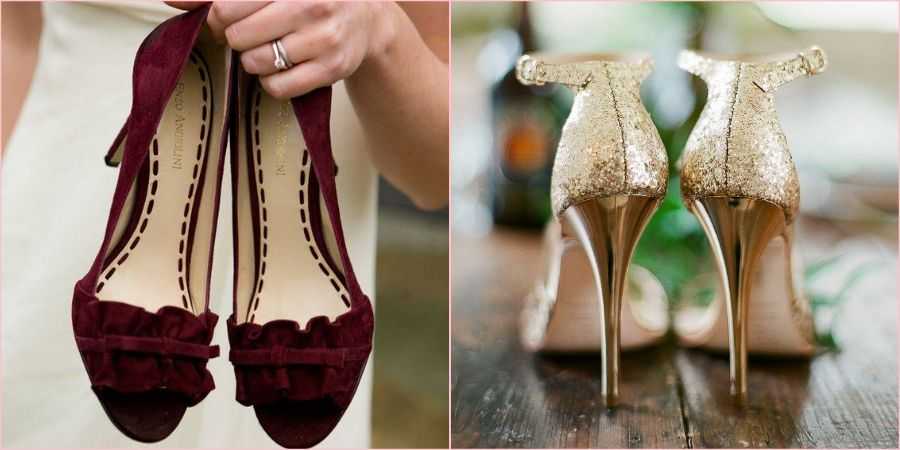 Для банкета в закрытом помещении необходимо взять сменную обувь, чтобы не спариться. Хорошей идеей станет найти туфельки или ботильоны из замши и бархата. Так же подойдет блестящая обувь или с обилием красивого декора.
