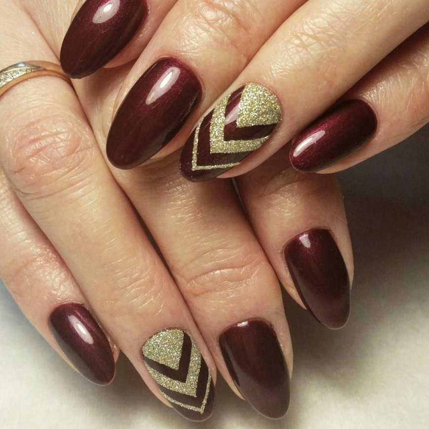 Лунный дизайн. Лунный маникюр — неплохая альтернатива обычному френчу, и такой дизайн отлично смотрится в сочетании с бордовыми оттенками. Лук можно раскрасить в любой цвет, украсить блестками или потертостями.