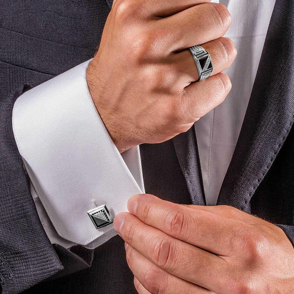 Еще один удачный вариант для белой рубашки — запонки с черным агатом. Эта модель больше подходит солидным мужчинам постарше — руководителям, ораторам. Лаконичный и глубокий черный с характерным блеском придаст мужчине не только строгости и деловитости, но и некоего шарма и сексуальности.