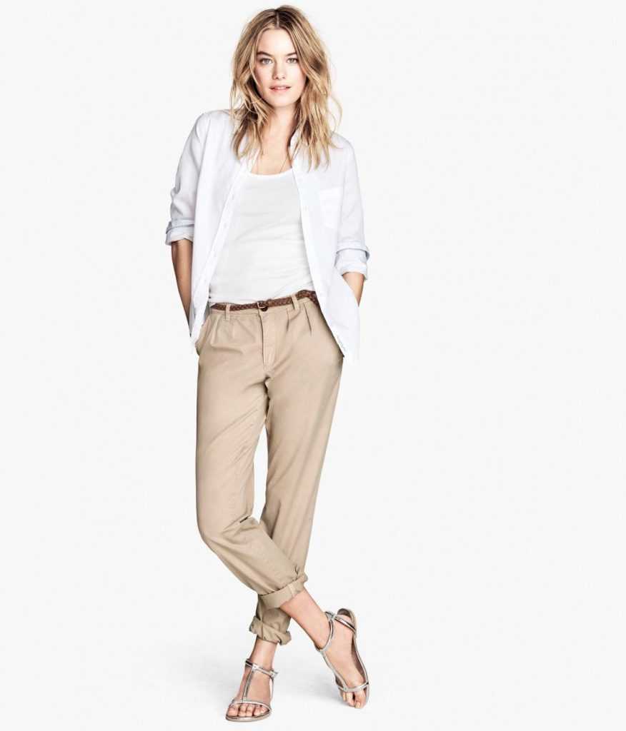 Чиносы – это удобные стильные изделия свободного кроя. Книзу они немного заужены, часто подвернуты вверх. Удобный фасон не ограничивает движений и позволяет чувствовать себя максимально комфортно. Эта модель прекрасно сочетается с такими вещами летнего гардероба: