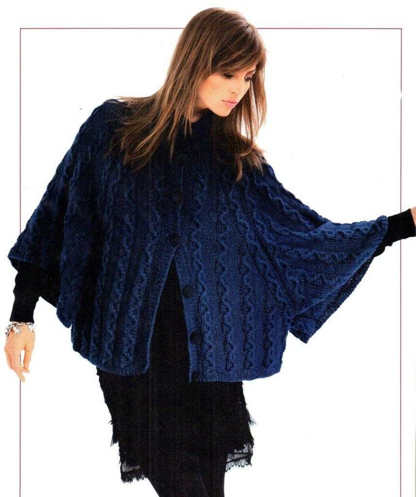 Любимая модель неординарных дам это пончо кардиган. Модель кардигана имеет крой пончо, в свободном фасоне, с пуговицами и карманами. Подобная модель отлично скорректирует силуэт, и скроет недостатки фигуры. Крупным дамам лучше выбирать однотонные и удлинённые модели. А стройным девушкам можно экспериментировать и выбирать яркие и необычные варианты. В сочетании с объёмным верхом наилучшим выбором будут брюки, джинсы, леггинсы. Так образ будет пропорционален.