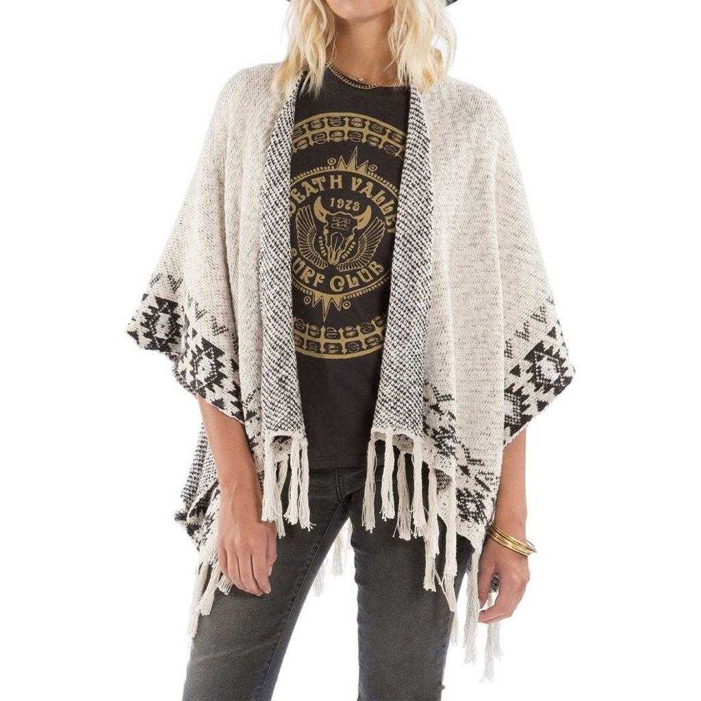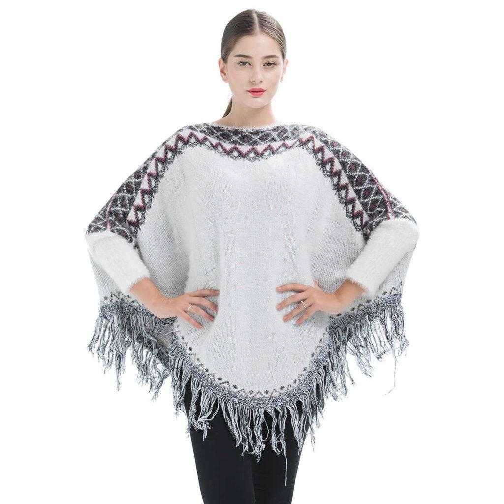 Традиционное в мексиканском стиле, это прямоугольная ткань с отверстием для головы, без рукавов. Его особенности в том, что оно выполнено из шерсти, одевается через голову не имея пуговиц. А яркие мексиканские расцветки, разнообразят даже скучный образ. Идеально сочетается такая модель с узким низом, но и с юбками только не длинными, смотрится не плохо.