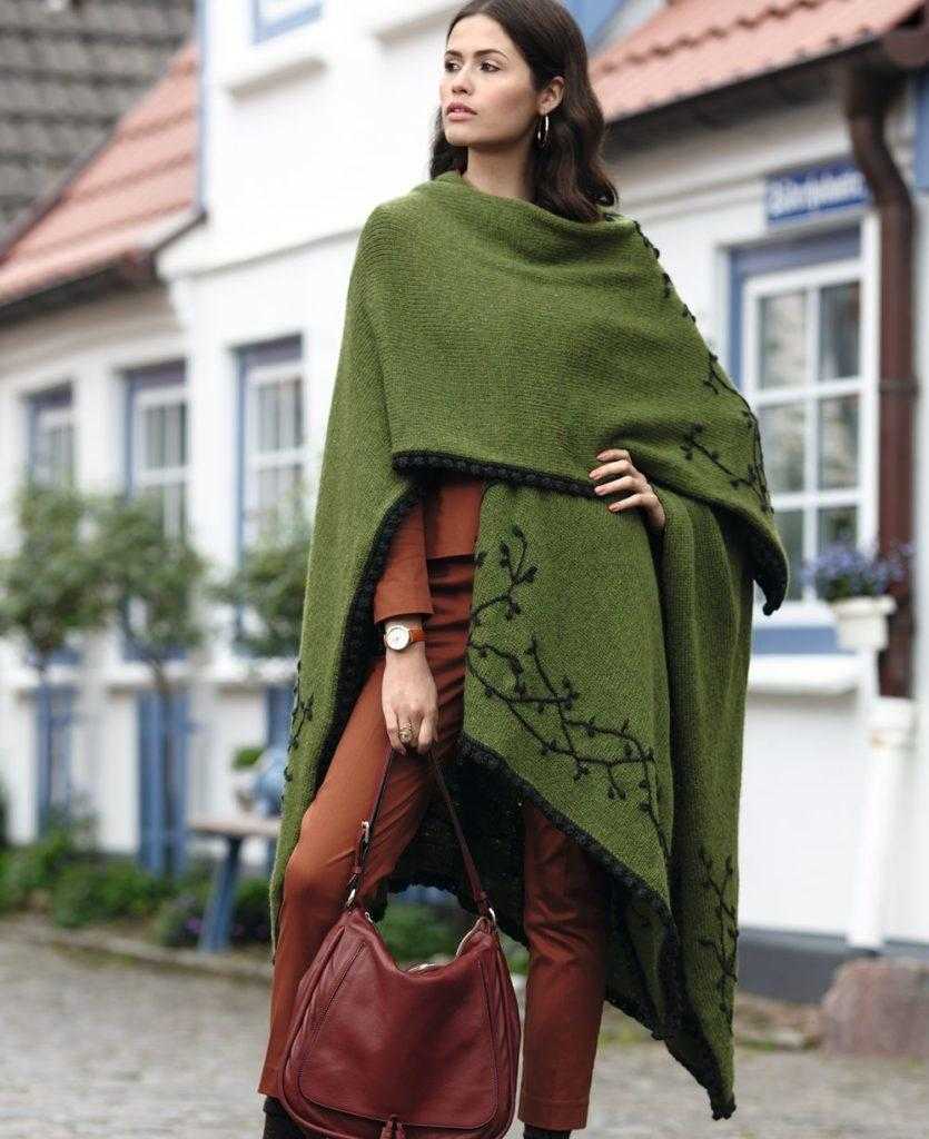 Изначально пончо было грубого фасона, ее дизайн позаимствовали у индийских племен. Но благодаря современным материалам и модным дизайнам, она комфортна и привлекательна. Оно сделано из прямоугольного отреза с горловиной и отверстием для рук. Главной его изюминкой, что делает его комфортным это свободный край, который часто задекорирован. А благодаря разнообразным фасонам любая женщина выберет по своему вкусу.