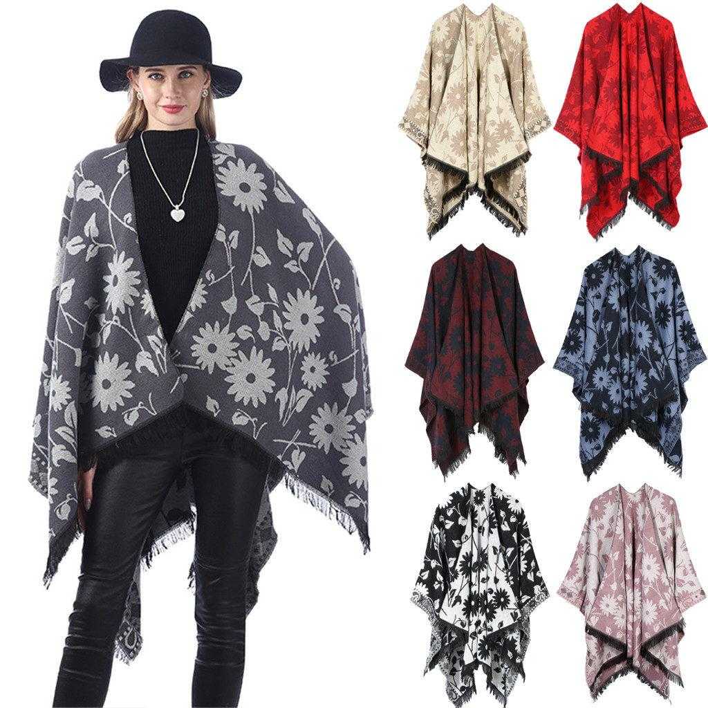 Расписные узоры и насыщенная цветовая палитра платков делает пончо настоящим произведением искусства