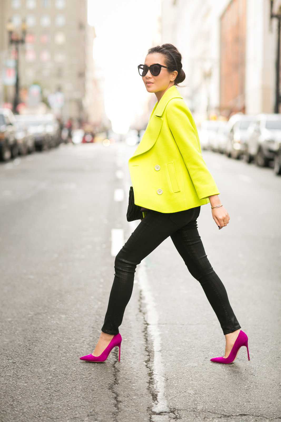 Например, на прогулку с друзьями можно надеть зеленый топ и джинсы классической расцветки, а сверху накинуть малиновый жакет.