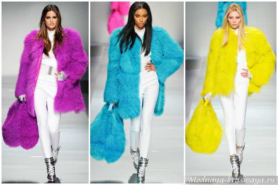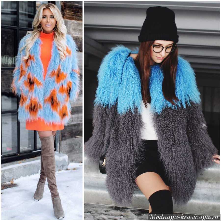 Капризная нынешняя мода требует разнообразия, поэтому замечательный длинный ворс красят, стригут, создавая совершенно невероятную, изумительную по красоте одежду. При грамотной окраске качество шкуры не теряется, а оранжевый, красный, голубой цвет и все возможные их оттенки сохраняются навсегда. В тренде разнообразная окраска одной модели – капюшон, манжеты одного цвета, воротник, полочки другого. Многое зависит от таланта дизайнера, его чувства меры и гармонии.