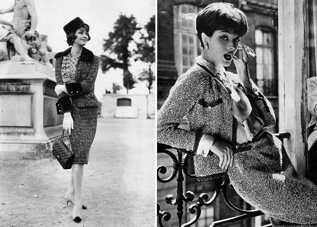 Коко Шанель — дизайнеру, тяготеющему к «переделыванию» мужской одежды, — удалось ввести в женский гардероб пиджак из твида. Модельер поработала над тканью: плотный материал она замачивала в особом растворе, чтобы смягчить его. Для придания пиджаку женственности Коко Шанель убрала воротник, укоротила длину, добавила шелковые вставки и золотые пуговицы. Даже сейчас одежда из твида — узнаваемый во всем мире образ Chanel. А пиджак — обязательная вещь в гардеробе первых леди Великобритании.