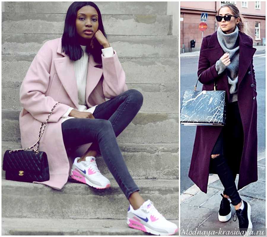 Искусственные шубки хороши тем, что настраивают на неформальный лад и позволяют носить обувь на ровной подошве. Однозначно стоит попробовать надеть ботинки под модель по типу чебурашка, оверсайз и изделие, имитирующее каракуль. То же самое можно сказать про укороченные и средней длины пальто с очень длинным ворсом. Полушубки под ламу так и вовсе сочетаемы с кроссовками.