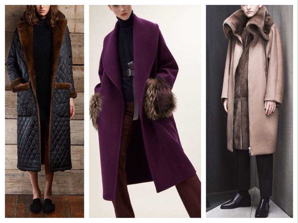 трапеция – модель помогает скрывать лишние объемы, деликатно спрячет животик беременной модницы, воротник может быть небольшим или большим отложным, шалевым или мех и вовсе может спускаться по полочкам до самого низа;