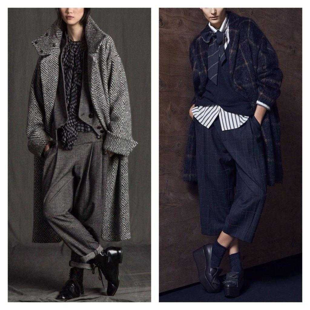 английское пальто характеризуется прямым силуэтом, классическим воротником, может иметь один или два ряда пуговиц или и вовсе быть без застежек – пальто-халат с поясом;