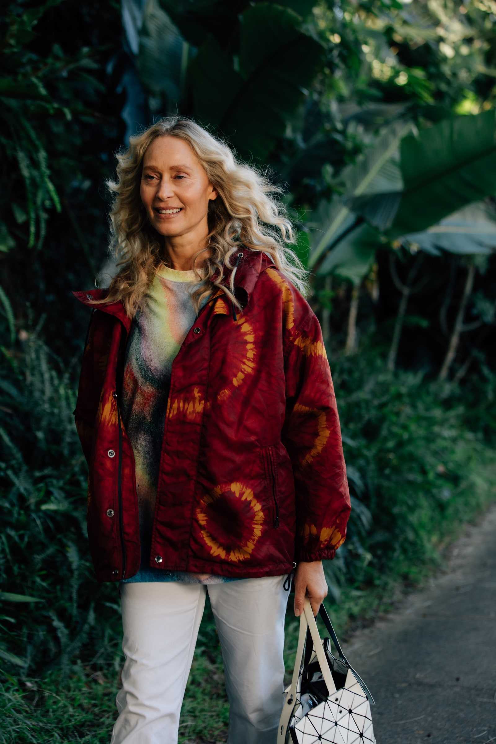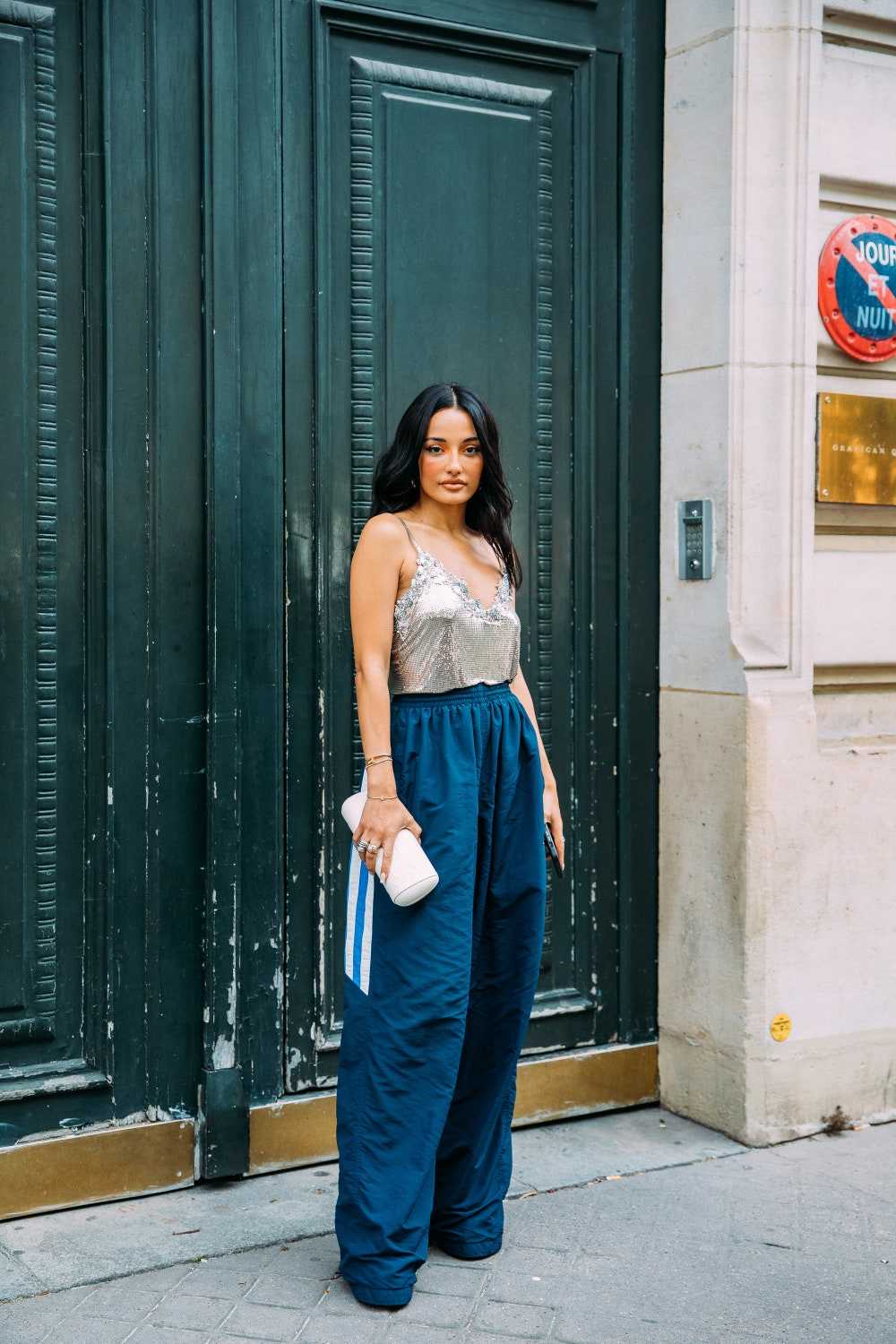 Оптимальный вариант — удлиненный жилет (ниже линии бедра) в том же оттенке, что и сам спортивный костюм. Тогда у вас получится монохромный образ, который всегда выглядит стильно.
