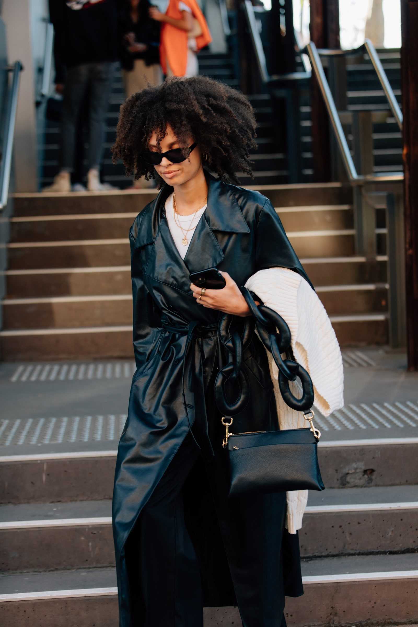 Коротка куртка подойдет тем, кто любит многослойные образы. Актуальный вариант — дутая куртка из искусственной кожи.