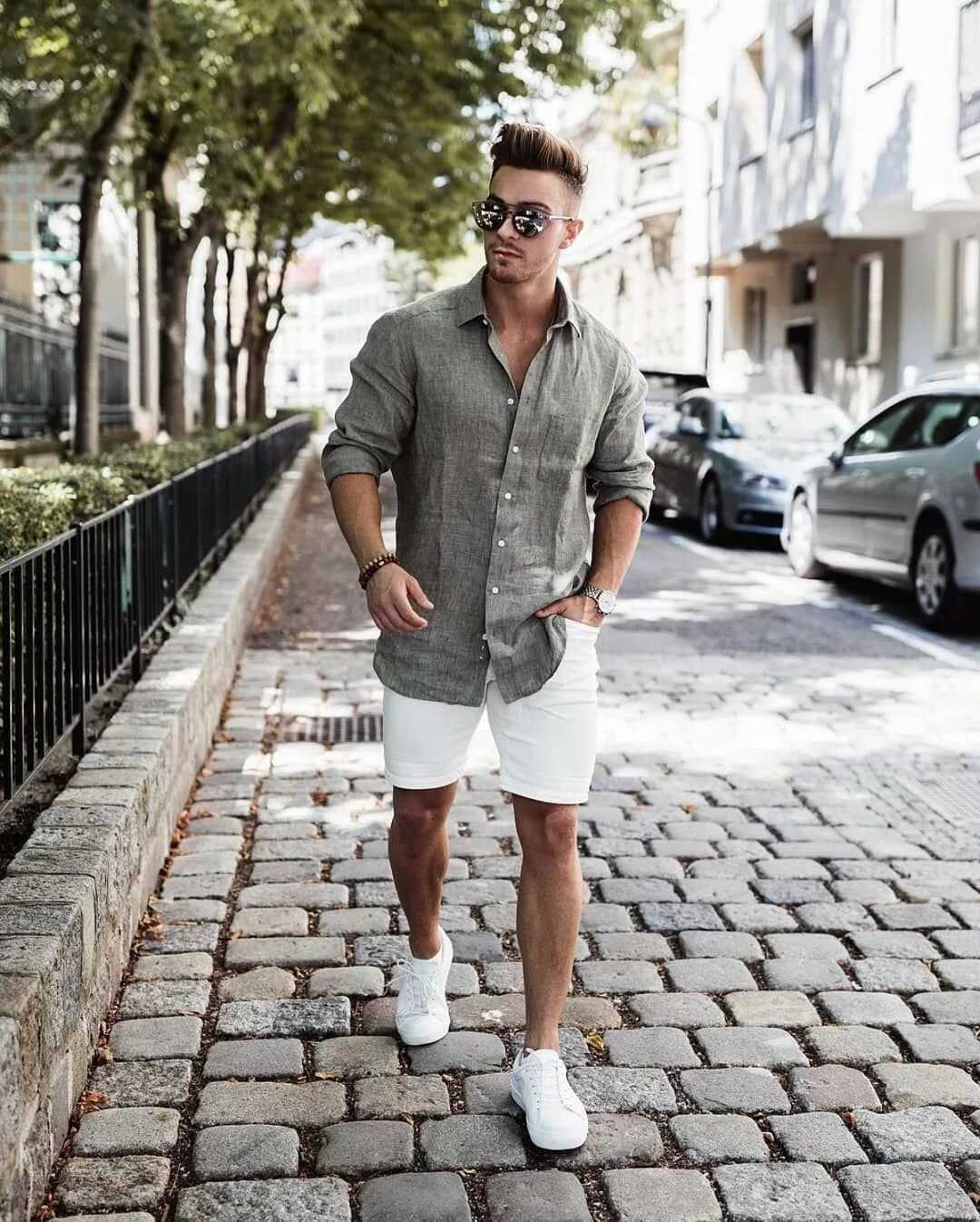 Мужчины могут носить кроссовки с одеждой любого стиля, за исключением строгого делового костюма. В остальном нет никаких ограничений. В теплую погоду кроссовки надевают под брюки чинос, джинсы, шорты. Верх — в зависимости от настроения и обстановки: майки, рубашки в клетку, джинсовые куртки, кардиганы, «треники».