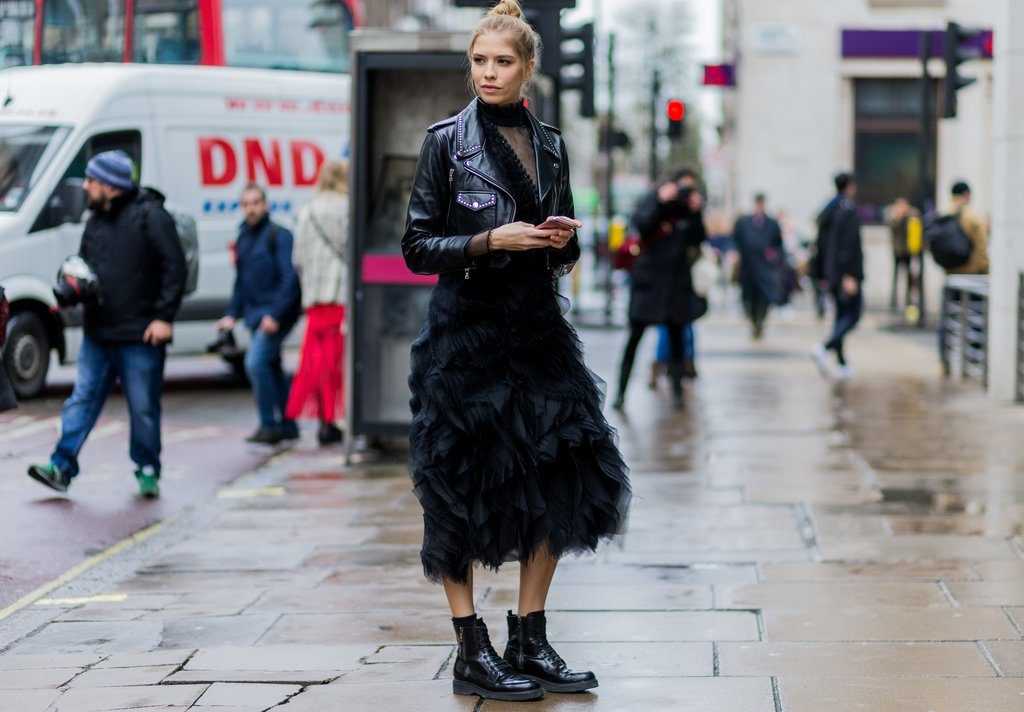 Непременно попробуйте новинку этого сезона – сочетание стильных ботинок на толстой подошве с пышной фатиновой юбкой в том! Брутальности данному луку придаст кожаная куртка-косуха. Получится эдакая утонченность и грубость, создающая вокруг женского очарования особенный шарм. Подобный ансамбль незамеченным точно не останется!
