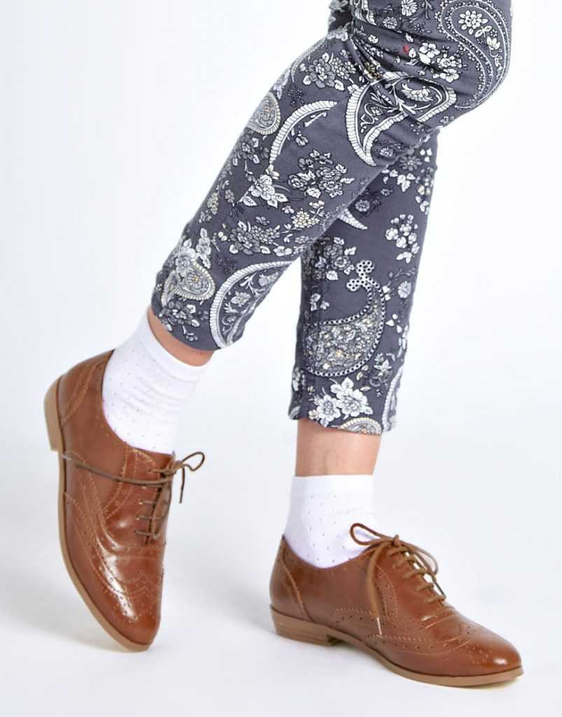 Можете смело подбирать к ним классические костюмы или пальто английского покроя, и вы точно не прогадаете с образом. Для каждодневных прогулок к туфлям надевайте длинные лосины или джинсовые брюки с отворотами. Верхняя часть одежды может быть в виде рубашек, пуловеров, жакетов и пальто.