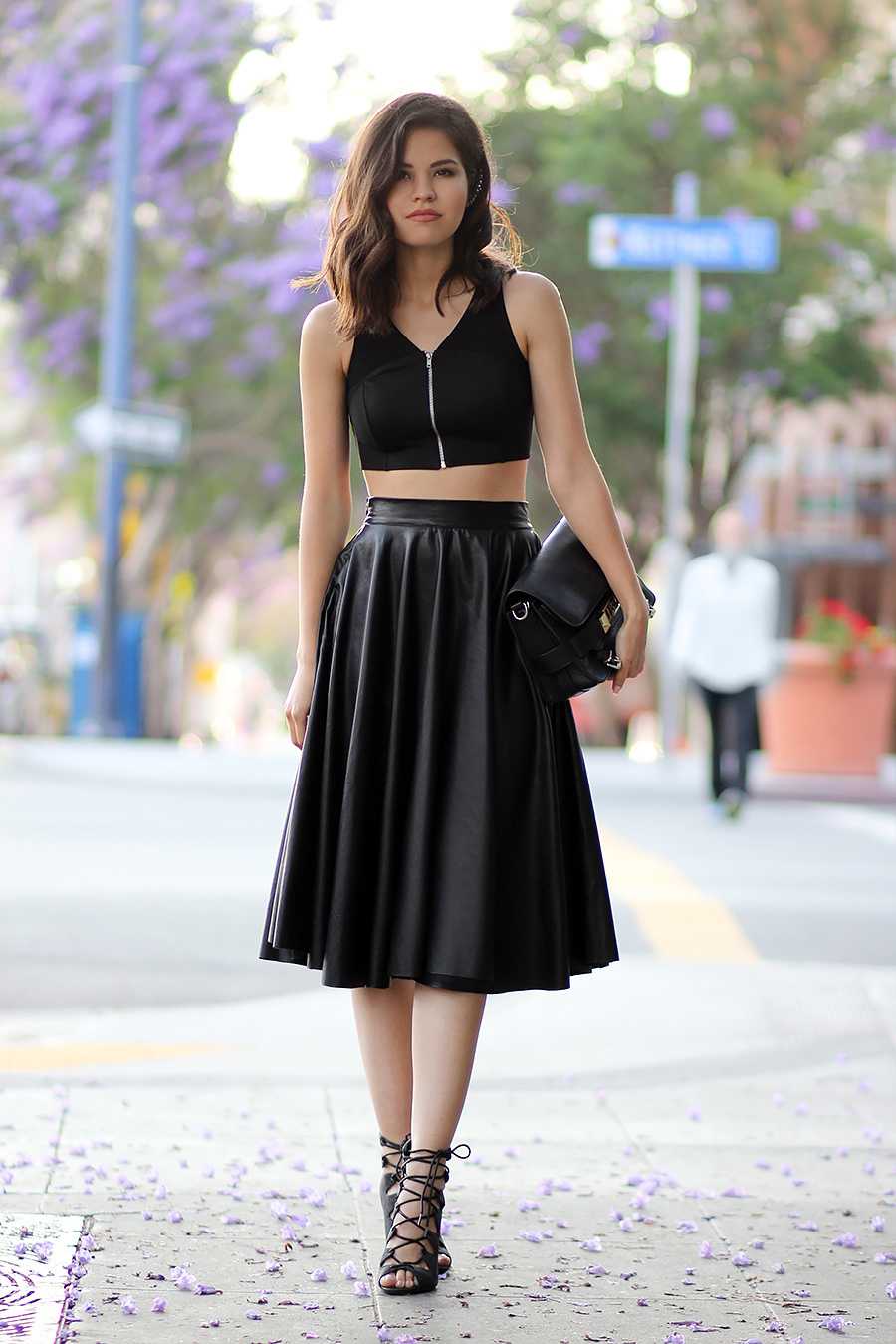 - Для дерзкого стиля характерна игра на грани; соединение кожаной мини-юбки с кожаными босоножками и лёгкой блузой. Закрытость блузы уравновесит комплект и не сделает его вульгарным.
