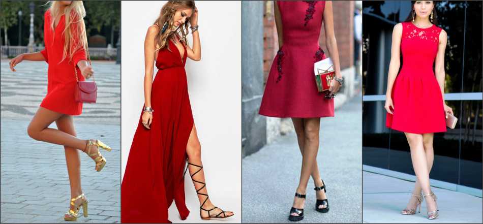 Так, например, летом с красным платьем более уместно будут смотреться босоножки или сандалии, если они гармонируют со стилем. Бархатное платье, которое предназначено для холодного времени года, великолепно сочетается с обувью на широком каблуке или плоской подошве.