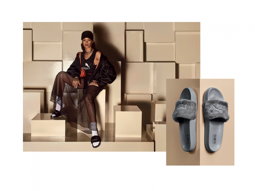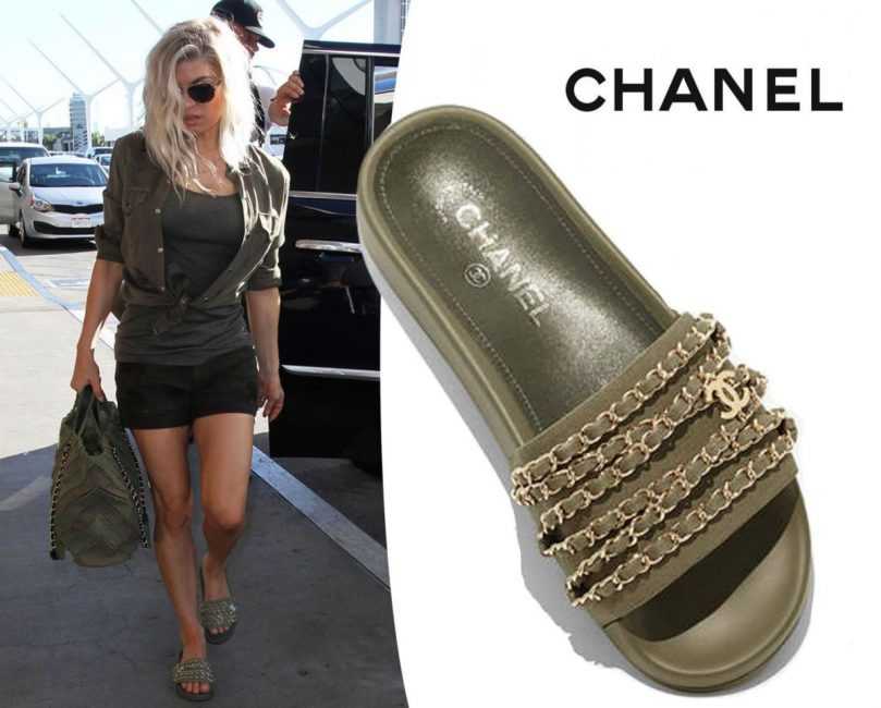 Певица Fergi в стиле хакки в слайдерах Chanel