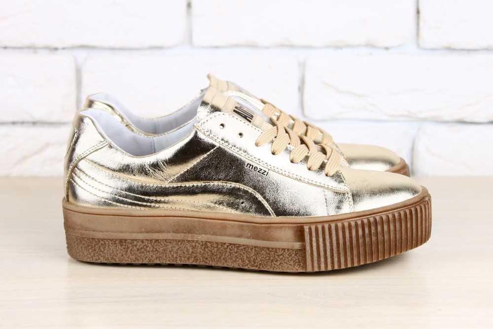 - женские кеды Пума представлены как классическими вариантами, выполненными в черных и коричневых цветах, так и весьма неординарными золотистыми, розовыми, металлическими оттенками.