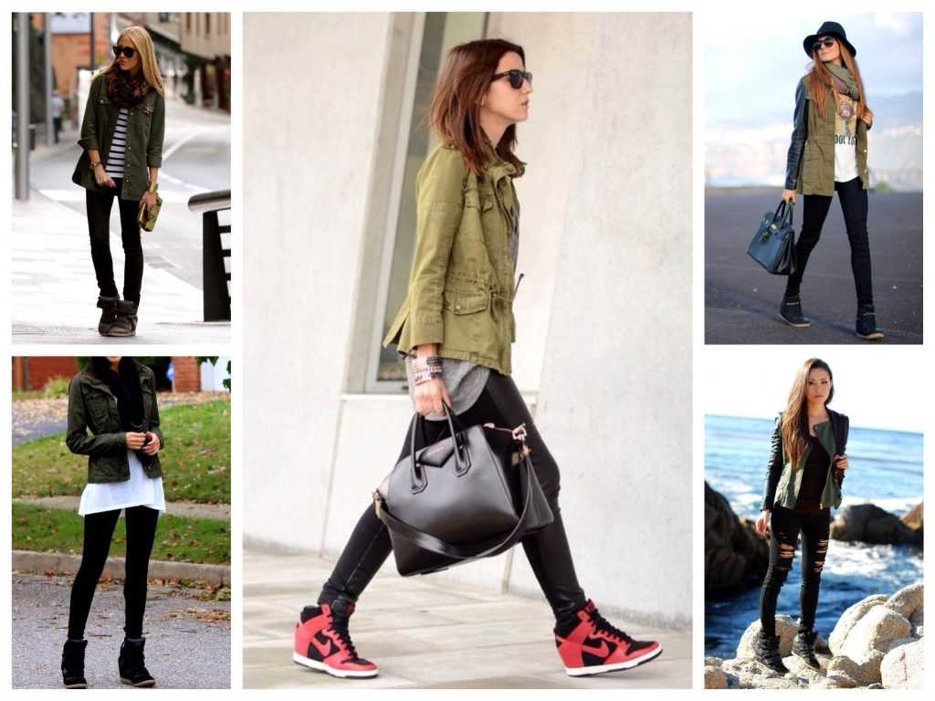 Если сникерсы сильно обрезаны, то их можно носить с бриджами, штанины могут быть как зауженными, так и обычными. А если обувать сникерсы в холода, тогда они сочетаются со спортивными утепленными куртками.