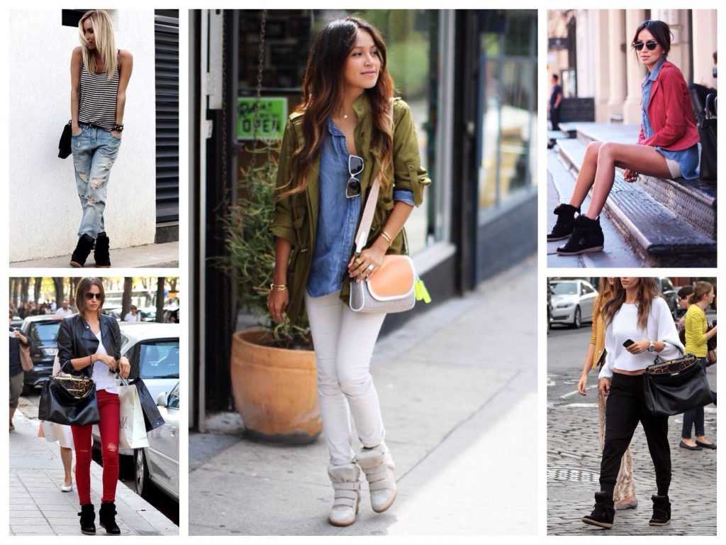 Идеальны для девушек, желающих выглядеть повыше, не жертвуя при этом удобством, а также для женственных образов с платьями и юбками. Самая известная модель этих сникерсов, конечно же, Isabel Marant. Цена за пару выше среднего, однако легко можно найти им замену и у других марок. Отличные варианты на платформе могут предложить те же Nike или Zara, а совсем уж демократичной ценой порадуют Kari.