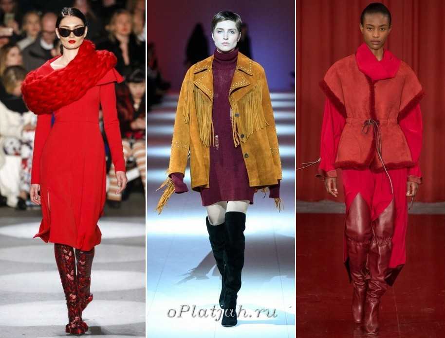 Полностью красный ансамбль можно разнообразить разными оттенками горячего тона, как платья, так и обуви. Приглушенные классические тона пар уравновесят яркие оттенки одежды.