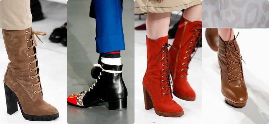 Многие модные бренды выпустили свои версии ботинок. Наибольшую сенсацию произвели модели Prada с накладными карманами-сумками и шнуровкой, а также ботфорты-челси от Bottega Veneta с эффектными воздушными петлями. Высокие ботинки на толстой подошве, которые предлагают Dolce & Gabbana, Dior и Valentino, оснащены женственными деталями: ремешками, пряжками, цепочками, благодаря чему выглядят женственно. Сегодня этот тренд доступен многим женщинам, влюбленным в моду, ведь можно найти варианты с самым разным ценником: от демократичного масс-маркета (Mango, H&M, Zara) до вышеупомянутого тяжелого люкса.