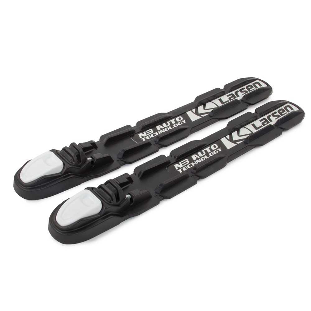 Спортивный бренд Larsen выпускает крепление с типом зажима NNN в черном цвете. Большая надпись на корпусе сразу указывает на автоматический тип системы. В каталоге производителя эта версия предлагается в размере XS для лыж длиной 100-120 см, а также S для подростков с размером ноги до 40 и длиной лыж 130-160 см. Монтаж устройства осуществляется на саморезы. Платформа состоит из комбинации металла и пластика, а потому сочетает в себе прочность и легкость. Судя по отзывам, товар нравится покупателям простой работой и доступной стоимостью.