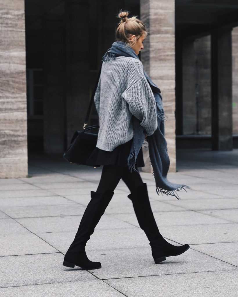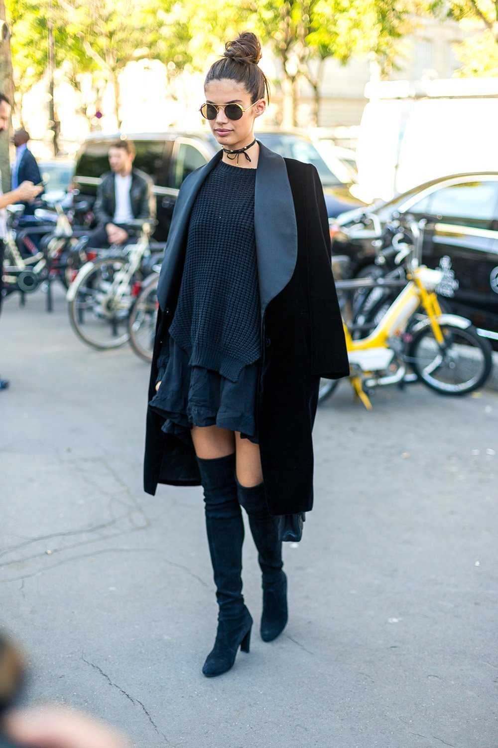 Общее правило, действенное для всех сочетаний в данном разделе: верх наряда должен быть объёмным, грубым, многослойным и даже немного «оверсайзовым». Делается это для того, чтобы слегка уравновесить облегающую сексуальность ботфортов.