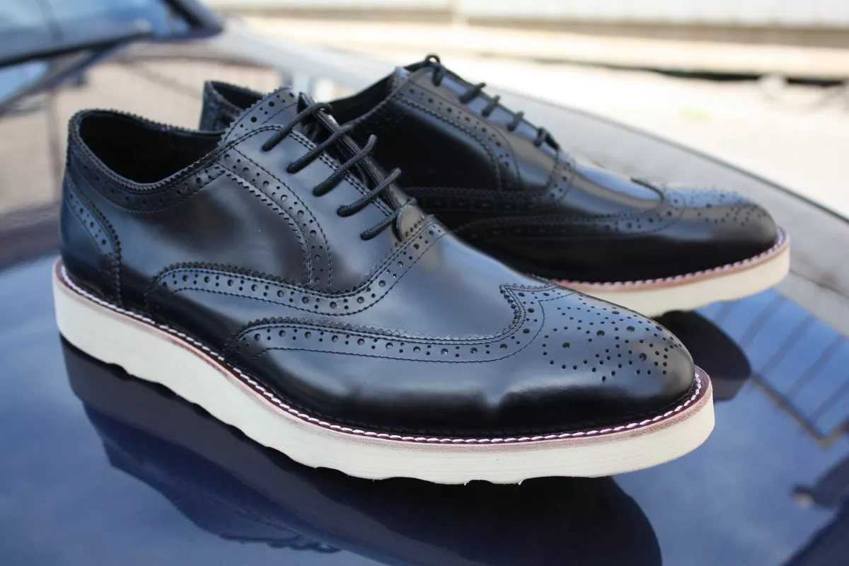 Первые Броги, приобретенные большинством мужчин, часто имеют рыжевато-коричневый цвет. Это потому, что правила расслабляющего стиля в наши дни утверждают – коричневый цвет подходит не только для города, но и для офиса. Благодаря хорошему темно-синему оттенку, состоящему из двух частей с темно-коричневыми версиями, создающий красивый и подходящий для зала заседаний образ.