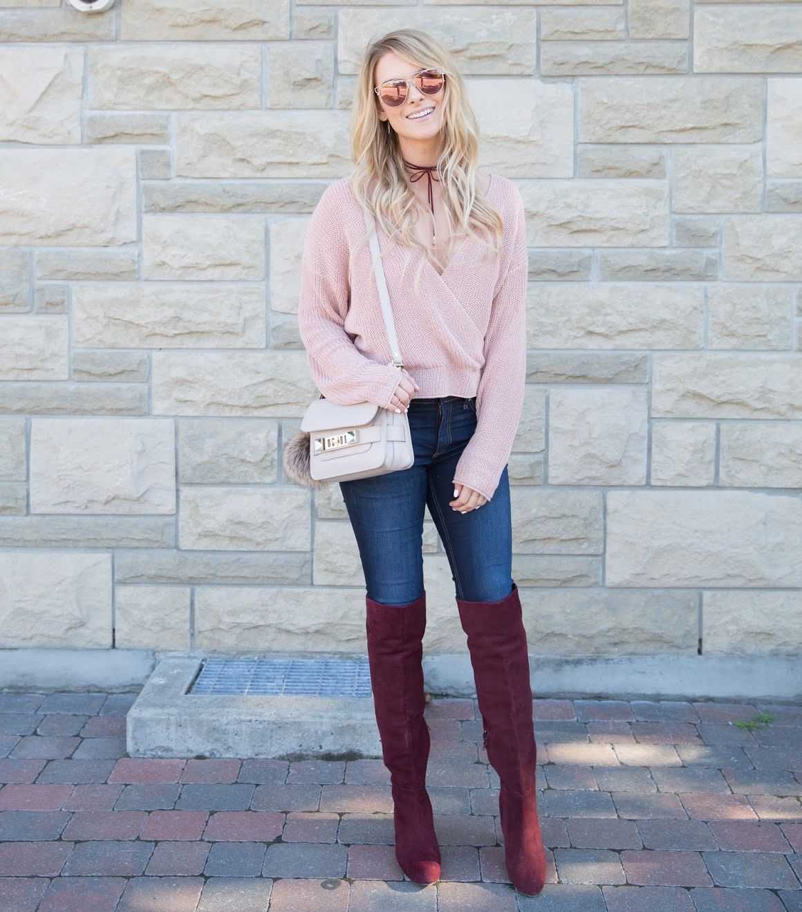 Замшевые бордовые сапоги на шпильке – это шикарный вид всегда и везде, поэтому они часто используются в создании вечернего образа в комбинации с платьями мини и миди. Варианты на плоской подошве рекомендуется носить с заправленными в них джинсами или штанами