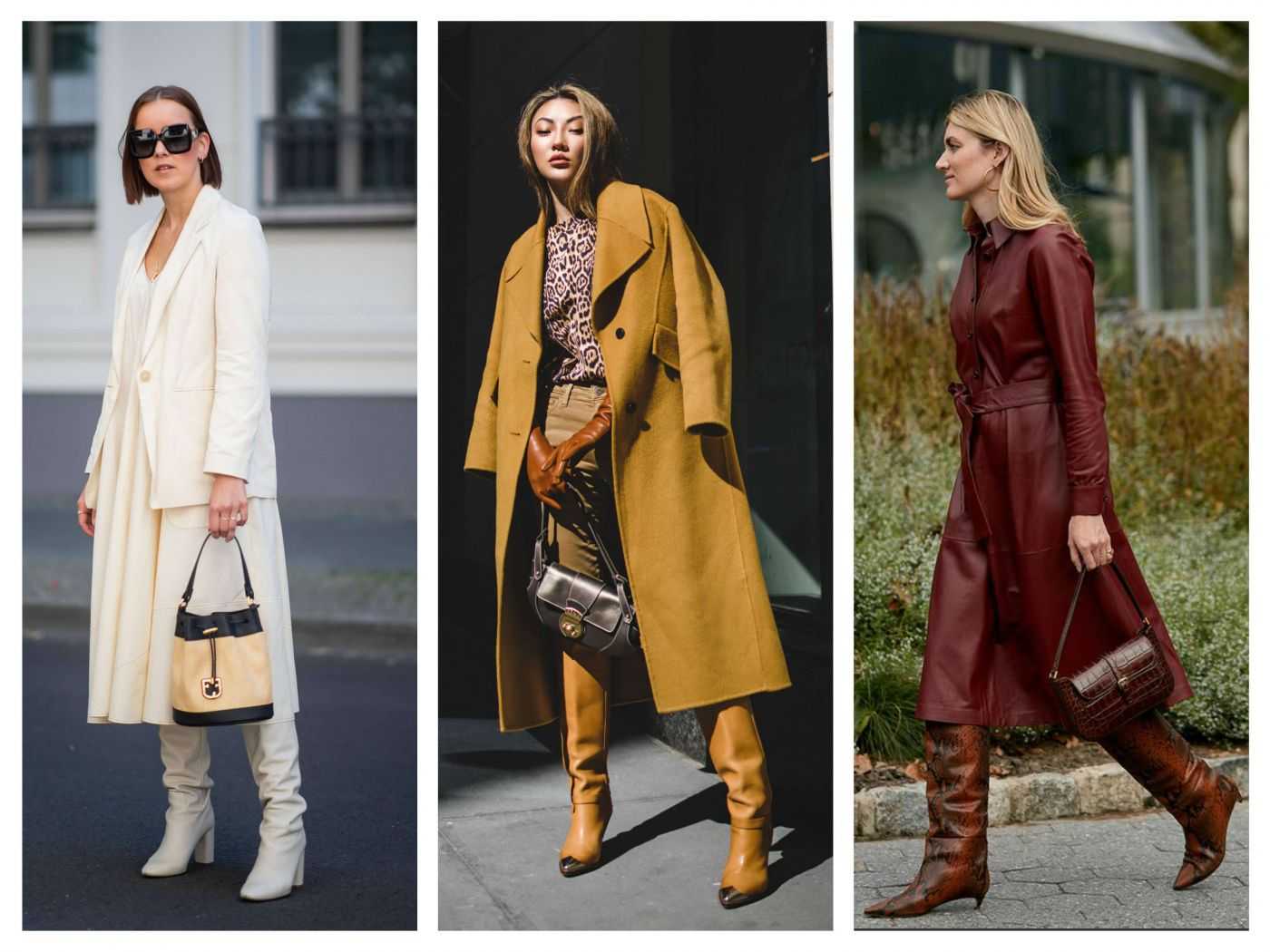 Офисные платья-футляры отлично смотрятся с сапогами из натуральной кожи и замши высотой до колена или чуть ниже. А для вечерних образов можно смело надевать лёгкие коктейльные платья с сапогами-ботфортами или сапогами-чулками.