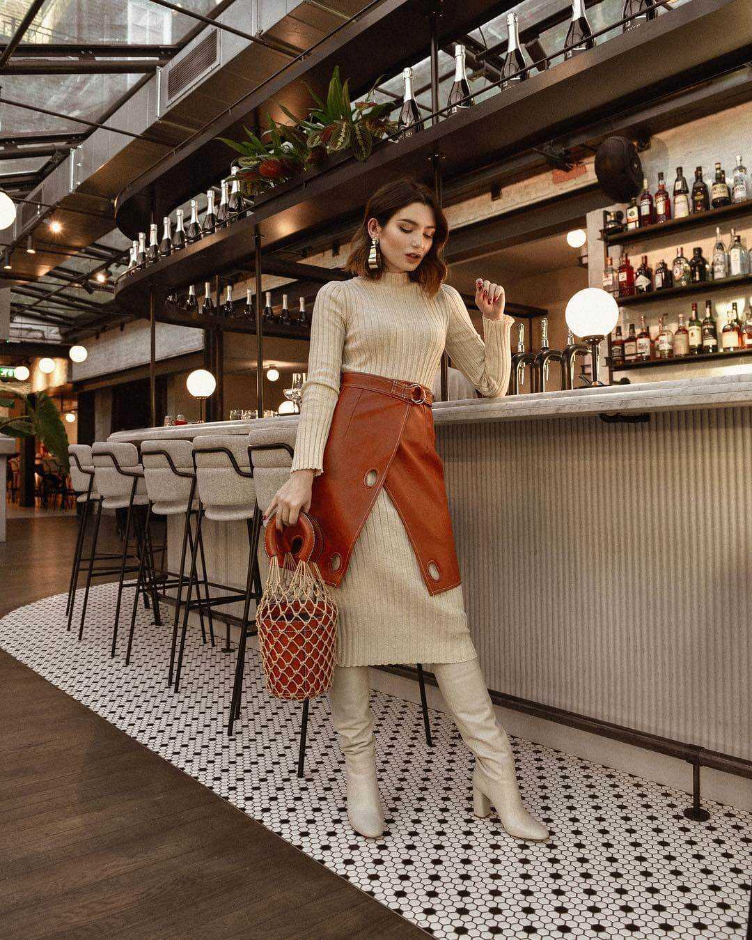 Так как сапоги — обувь для холодных сезонов, то и одежда в пару к ним будет соответствующей: трикотажной, шерстяной. Но не всегда!