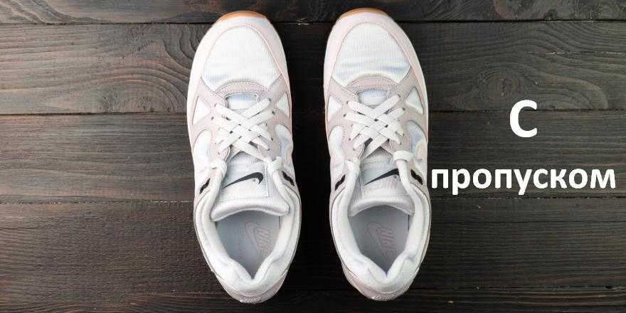 Такой вид спортивной шнуровки кроссовок подходит тем, у кого ноги с высоким подъемом. Шнуруя обувь подобным методом, можно убрать давление с подъема и обеспечить двигательную активность голеностопу.