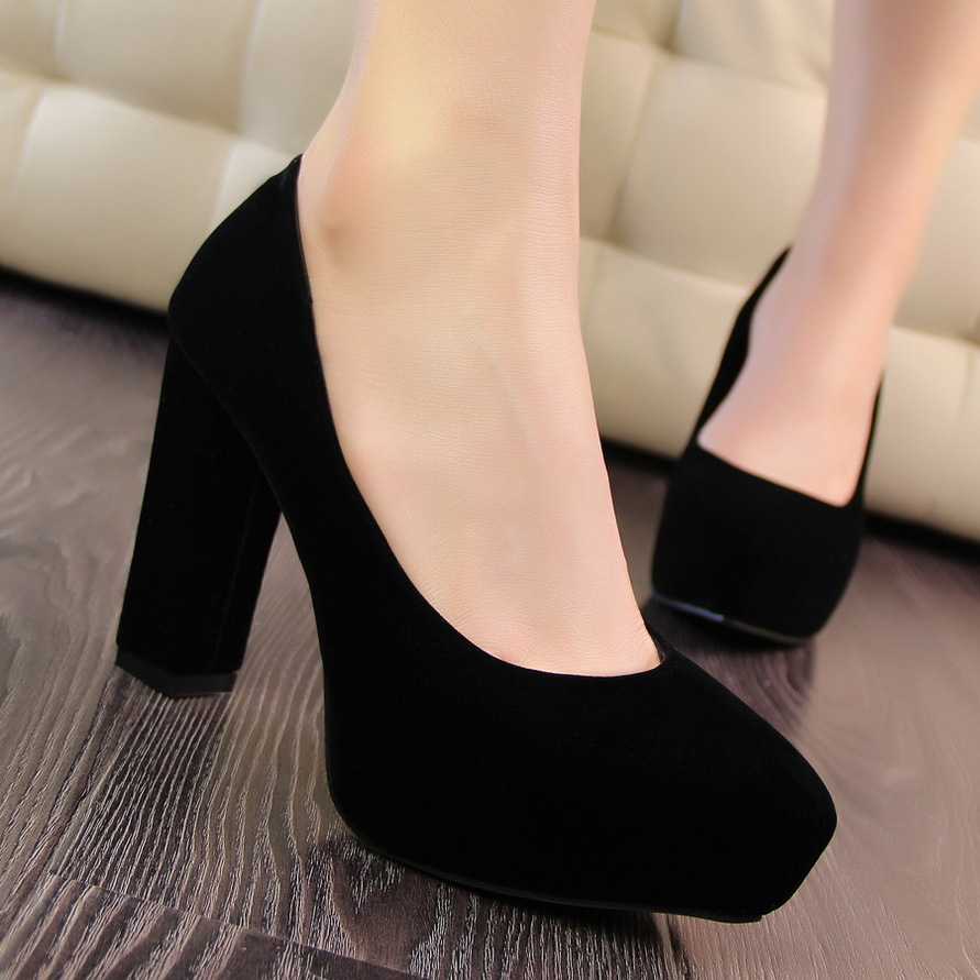 - Офисные служащие предпочитают для повседневной носки черные туфли с толстым каблуком — такие модели пользуются даже большей популярностью, чем лодочки на шпильке.