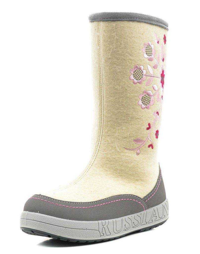 Валенки. По мнению большинства, являются самой теплой женской обувью для русской зимы. Валяют их из натуральной овечьей шерсти (войлока). Внутри изделий нет никакого меха и швов. Толщина валенка в среднем 5 мм, цвет светлый, серый или слегка коричневый. Самыми дорогими считаются белые варианты, так как для их изготовления используется тонкая шерсть овцы. Крашеные валенки подвергаются воздействию химических красителей. Производят их как машинным, так и ручным способом. Последние ценятся больше, так как получаются более мягкими, теплыми. Для слякотной погоды существуют модели с резиной подошвой.