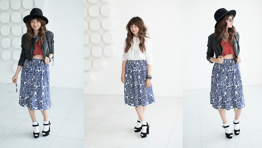 А поменяв всего пару аксессуаров можно из нежного образа создать более озорной. При этом босоножки и юбка не меняются.