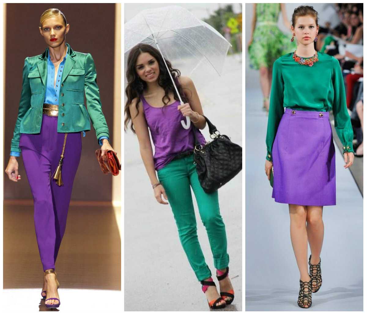 яркий цвет изумруда хорошо сочетается с холодными оттенками, их можно надеть с одеждой синего, пурпурного, лимонного оттенка;