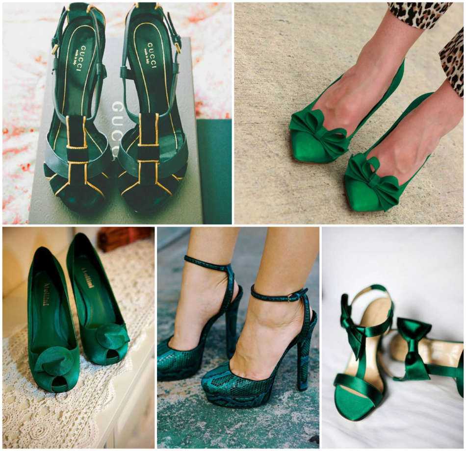 Зеленый цвет, как и все прочие, отличается многообразием оттенков. Поэтому при составлении луков следует учитывать не только фасоны туфель, но и их цвет.