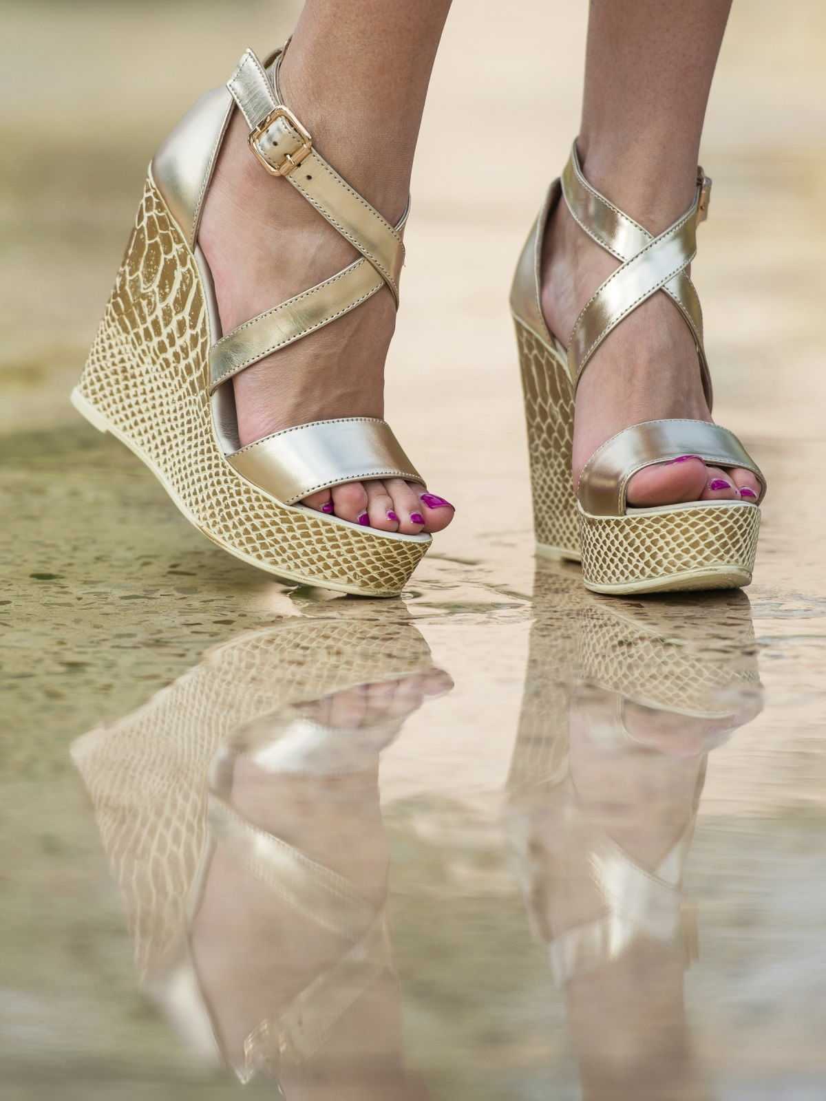 - На платформе и танкетке — идеальные босоножки для невысоких активных девушек. Они добавят несколько сантиметров к росту. Широкая танкетка или платформа защитят голеностопы от повреждений.