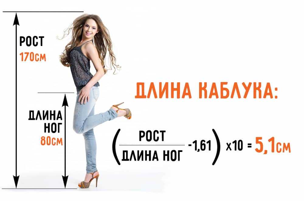 • для женщин невысокого роста важно чуть его добавить, а потому тонкие каблучки до 8 см с успехом выполнят эту работу; ограничение высоты каблука связано с серьезной нагрузкой на спину, в результате которой и так невысокая женщина из-за смещенного центра тяжести может согнуться вперед и казаться еще меньше; • пышнотелым красавицам не рекомендуется носить обувь на высоких и тонких шпильках: слишком серьезный контраст с комплекцией будет создавать такая обувь — гармоничные пропорции девушкам и женщинам с пышной фигурой даст утолщенный каблучок различной конфигурации высотой 5-8 сантиметров;