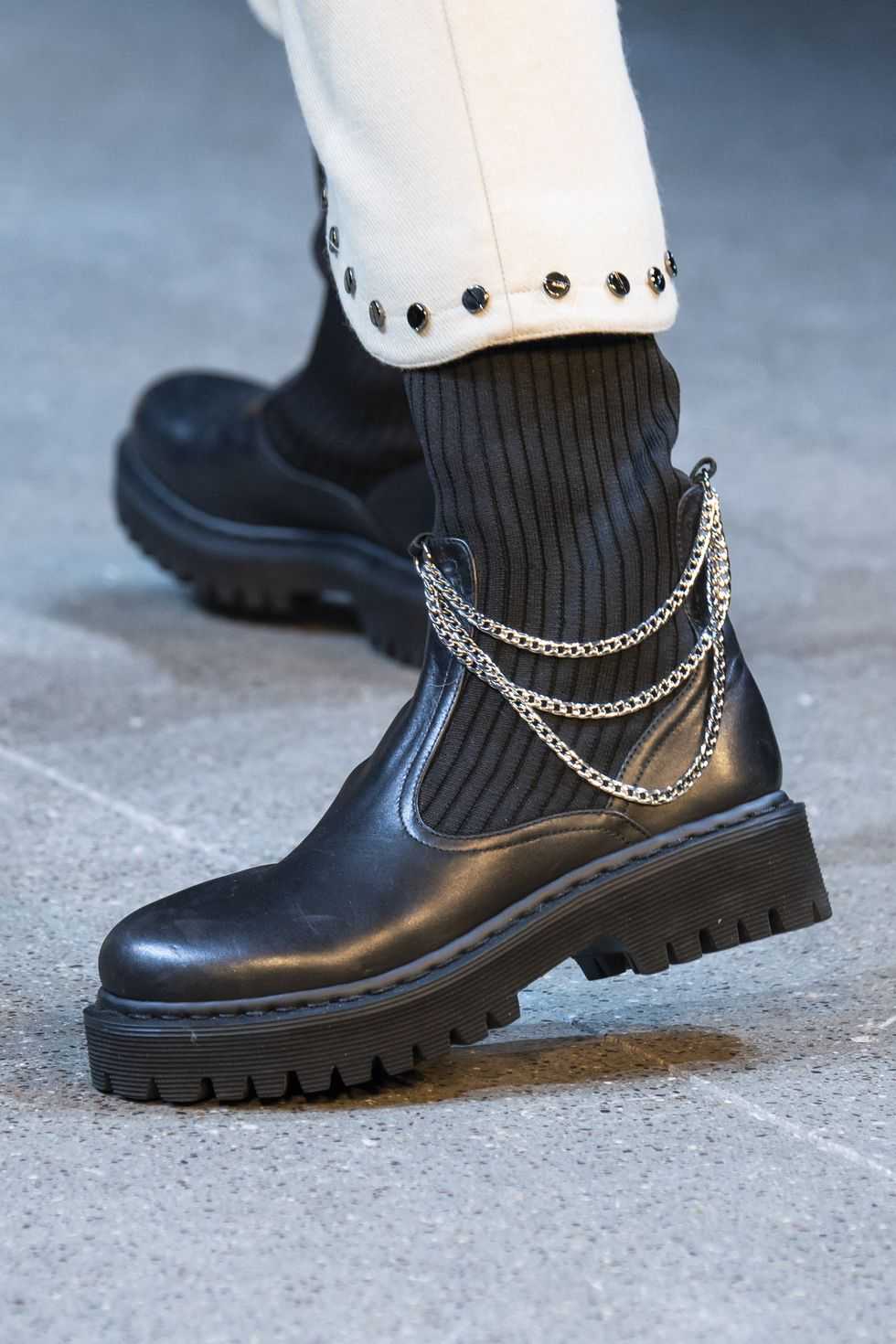 Отдельно стоит отметить, что особенно модными в осенне-зимнем сезоне стали ботинки со всевозможными цепями. Они могут быть тонкие или крупные, также нередко можно увидеть сочетание сразу нескольких вариантов. Смотрятся такие модели стильно и хорошо подходят ко многим образам.